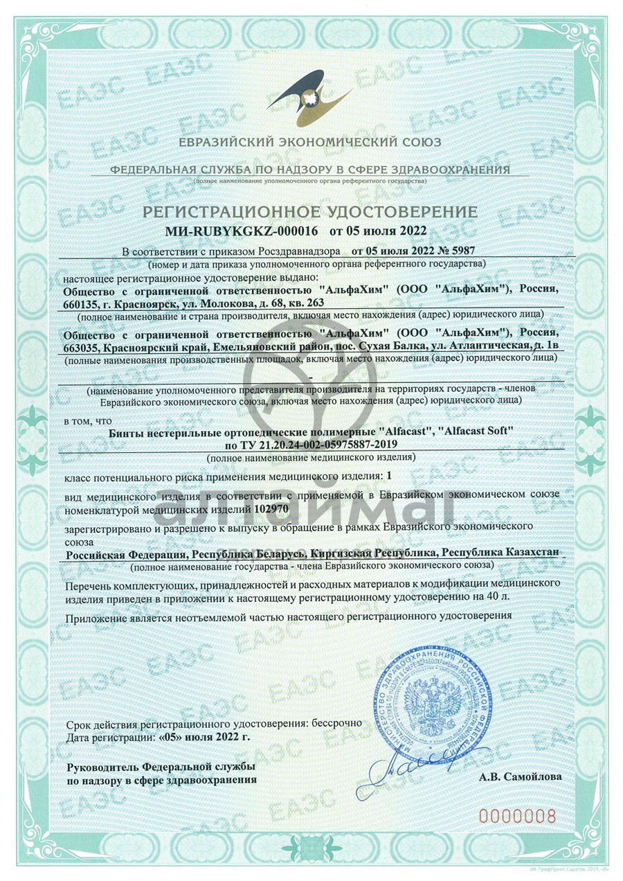 - Купите Бинт alfacast soft полимерный белый 7,5см*3,6м 1шт в Мурманске по доступной цене 630 ₽ с доставкой на дом или заберите Ваш заказ в Мурманске из ближайшего пункта выдачи, сделав заказ на AltaiMag.ru.
