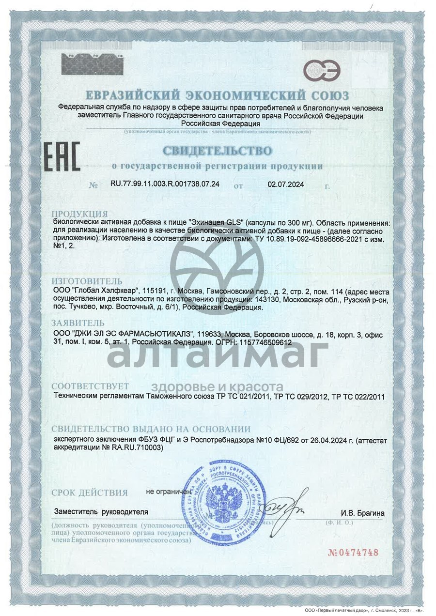 - Купите Эхинацея БАД GLS 60 капсул в Мурманске по доступной цене 514 ₽ с доставкой на дом или заберите Ваш заказ в Мурманске из ближайшего пункта выдачи, сделав заказ на AltaiMag.ru.