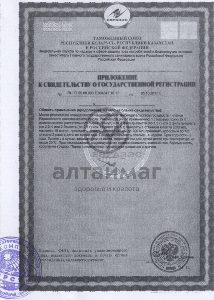 1 пакетик залить стаканом горячей кипяченой воды, накрыть крышкой, дать настояться 15-30 минут. Рекомендуется пить 1/4 стакана 4-5 раз в день.