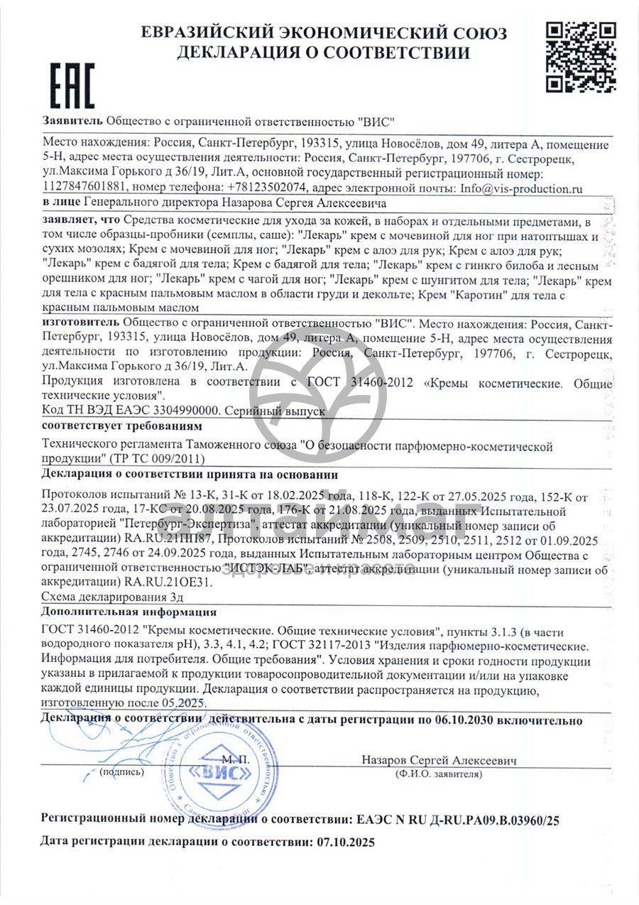 Есть вопросы по товару "Крем для рук с алоэ Лекарь ВИС 75мл"?