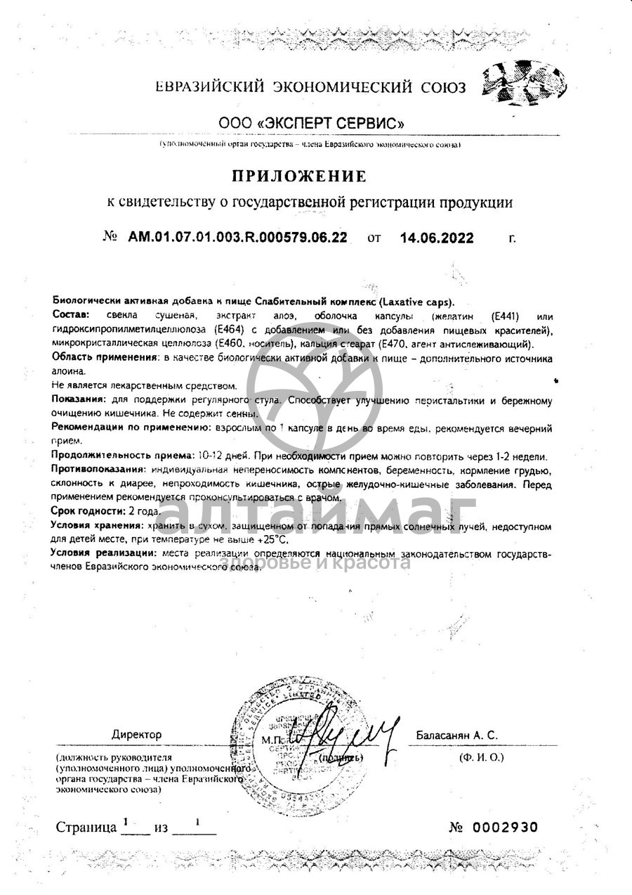 Слабительный комплекс «Laxative caps» для поддержки регулярного стула. Способствует улучшению перистальтики и бережному очищению кишечника. Не содержит сенны. Рекомендовано качестве биологически активной добавки к пище – дополнительного источника алоина.