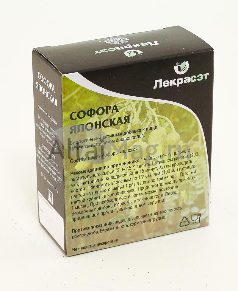 - Купите Софора японская, плоды, 50 г (Лекра-сэт) в Мурманске по доступной цене 143 ₽ с доставкой на дом или заберите Ваш заказ в Мурманске из ближайшего пункта выдачи, сделав заказ на AltaiMag.ru.